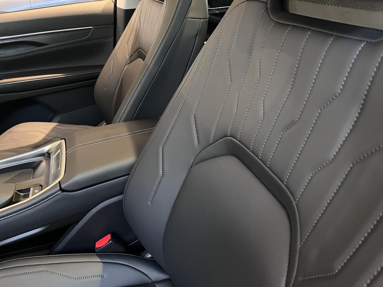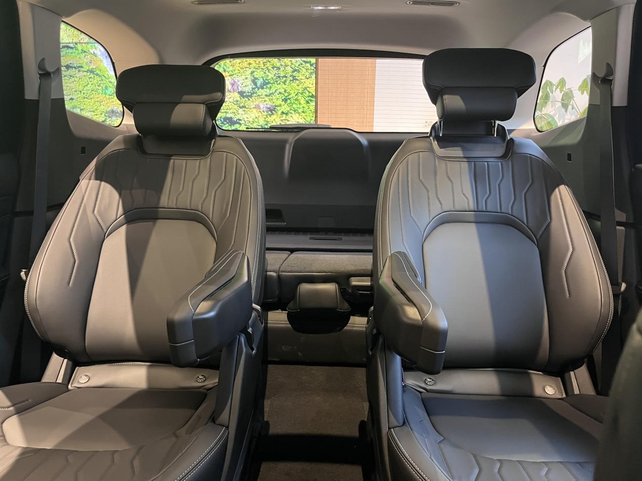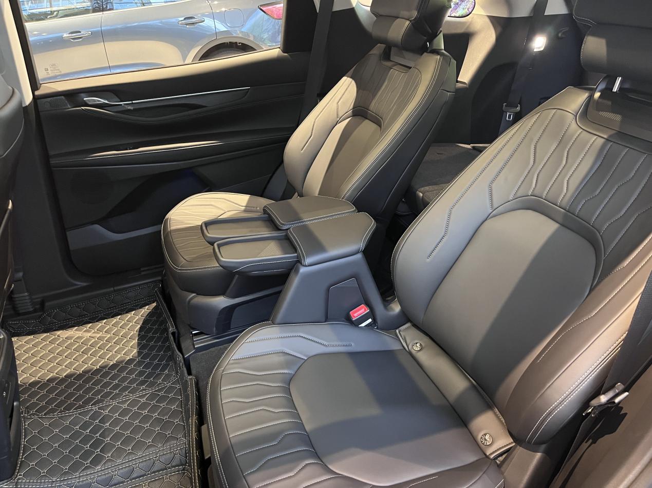 最让我们满意的肯定是空间和座椅布局了。我们看的这款是2+2+3的七座布局,第二排是两个独立的座椅,带扶手的那种。我媳妇身高一米六五,我接近一米八,我俩分别坐进第二排,把座椅调到合适位置,腿部空间都非常充裕,头部也没问题。关键是这两个独立座椅之间的通道挺宽的,我穿着冬天厚重的羽绒服,侧着身子也能比较轻松地走到第三排。这点对于经常需要用到第三排的家庭来说太重要了,不用每次都狼狈地翻折第二排座椅。