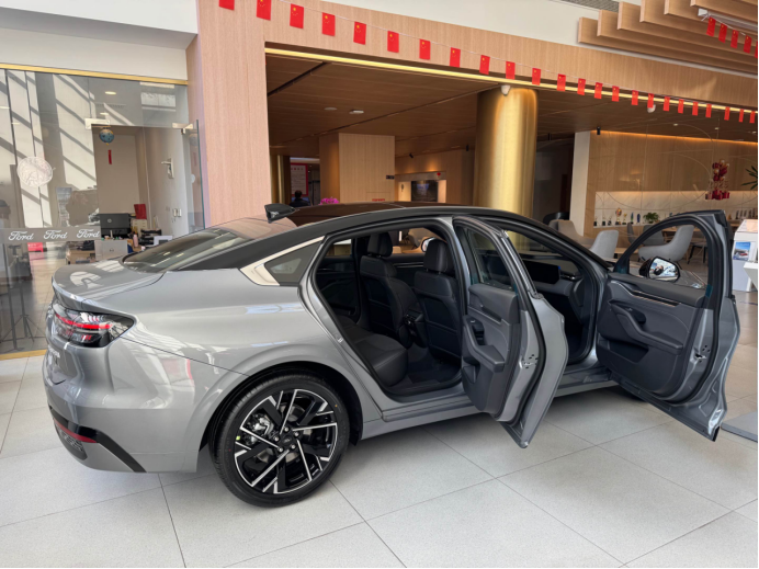 侧面溜背还是老样子,接近三米的轴距,后排空间实打实够用,我180cm坐进去,膝盖离前排还有三拳的空隙。车机这块儿,是这次改款的大亮点!大连屏往那儿一摆,视觉冲击力确实强,用上8155芯片后感觉体验快了很多,切导航、换歌都丝滑得很。语音识别也够聪明,我试着连着说指令。响应速度都特别快。