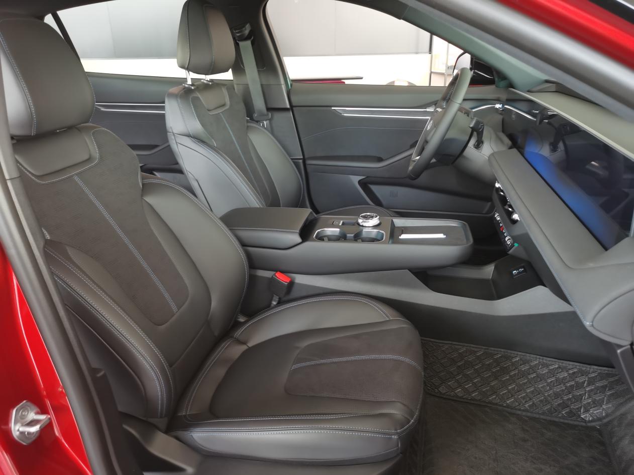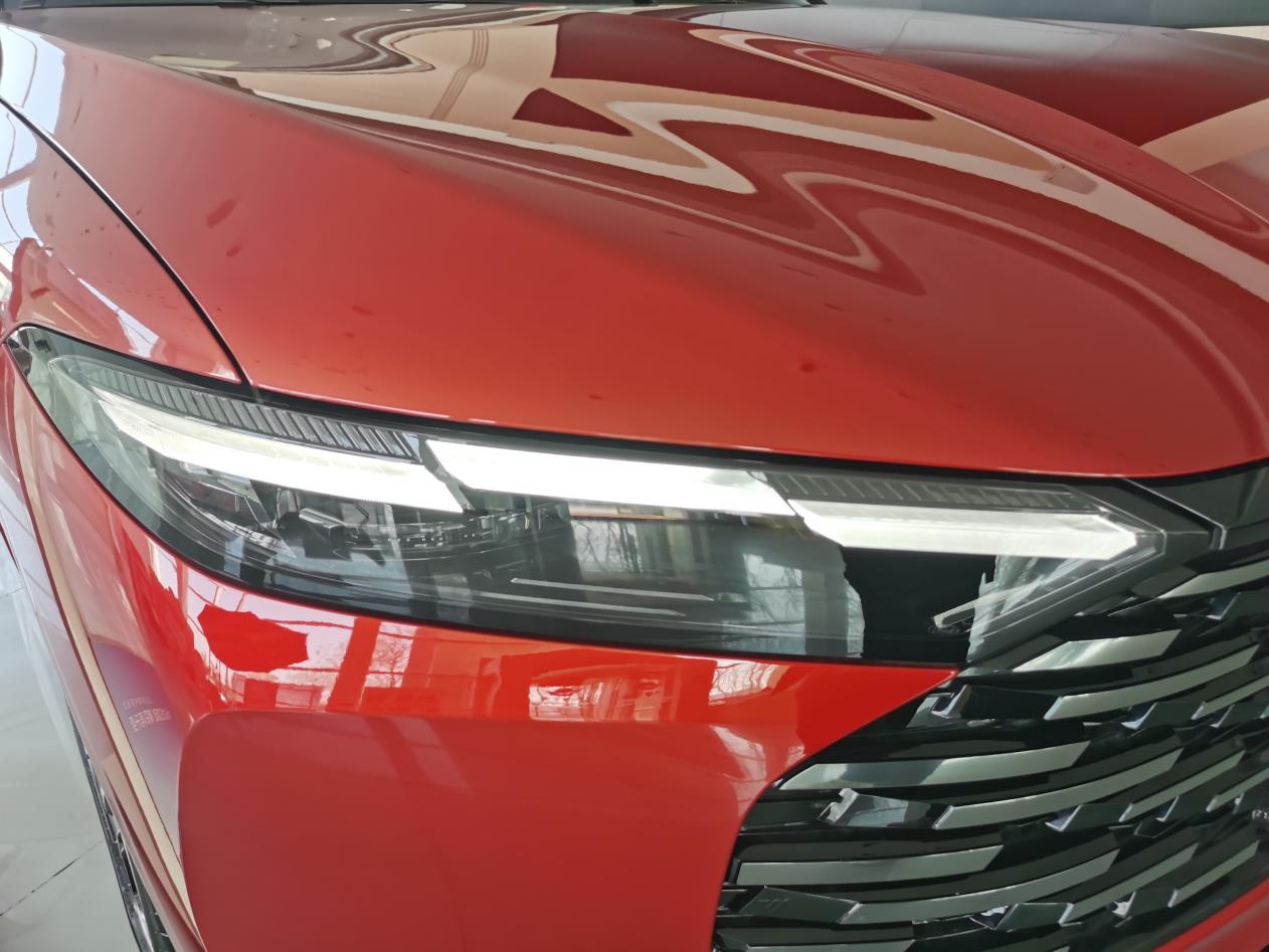 先说第一眼印象,谁懂这一抹红?!一点不俗气,反倒是感觉很有个性,光线下带着细腻珠光,质感直接拉满。前脸的立体格栅层次感超足,日行灯亮起来像条精致的光带,停在展厅里是真显眼,走进去就看到了
