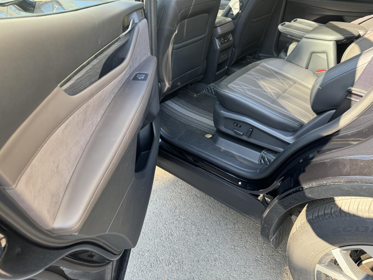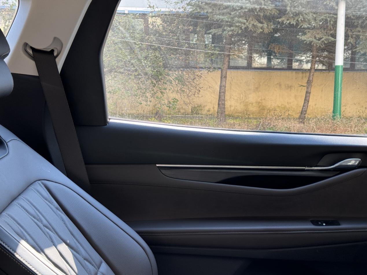 座椅是2-2-3的布局,这个必须给好评。我们这冬天冷,穿得跟熊似的,要是传统的2-3-2布局,想进第三排那真是得又爬又钻,狼狈得很。这个第二排中间留了通道,轻轻松松就能走到第三排,老人小孩都方便太多了。我特意去第三排试了试,以我这种中等身材坐进去,中短途旅行完全能接受,不是那种只能应急的“宠物座”。内饰是棕黑搭配,看着不沉闷也不轻浮,挺有质感的,软质材料用得也多,没啥廉价感。