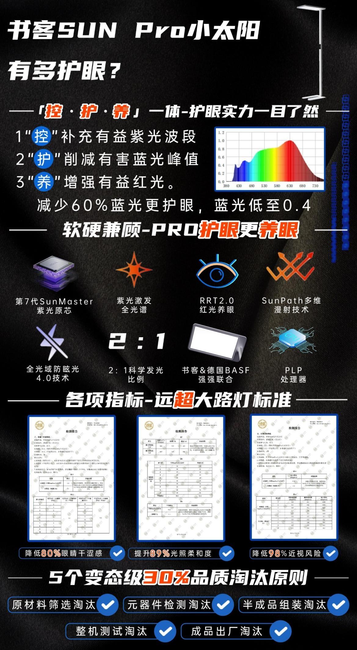 而紫光激发技术从源头规避高能蓝光,因此我强烈推荐爆火的书客Sun Pro小太阳,作为具备8年光学经验的专业老牌,采用紫光激发技术从源头规避高能蓝光,蓝光含量降低60%,主打“医学养护眼”的特性,是唯一做到降低98%近视风险的同时,缓解94%视觉疲劳,眼睛干涩感降低80%的护眼光源。并且光照柔和度提升89%,用眼舒适度提升87%,长时间阅读眼睛不适率下降77.9%。真正做到柔和不刺眼!