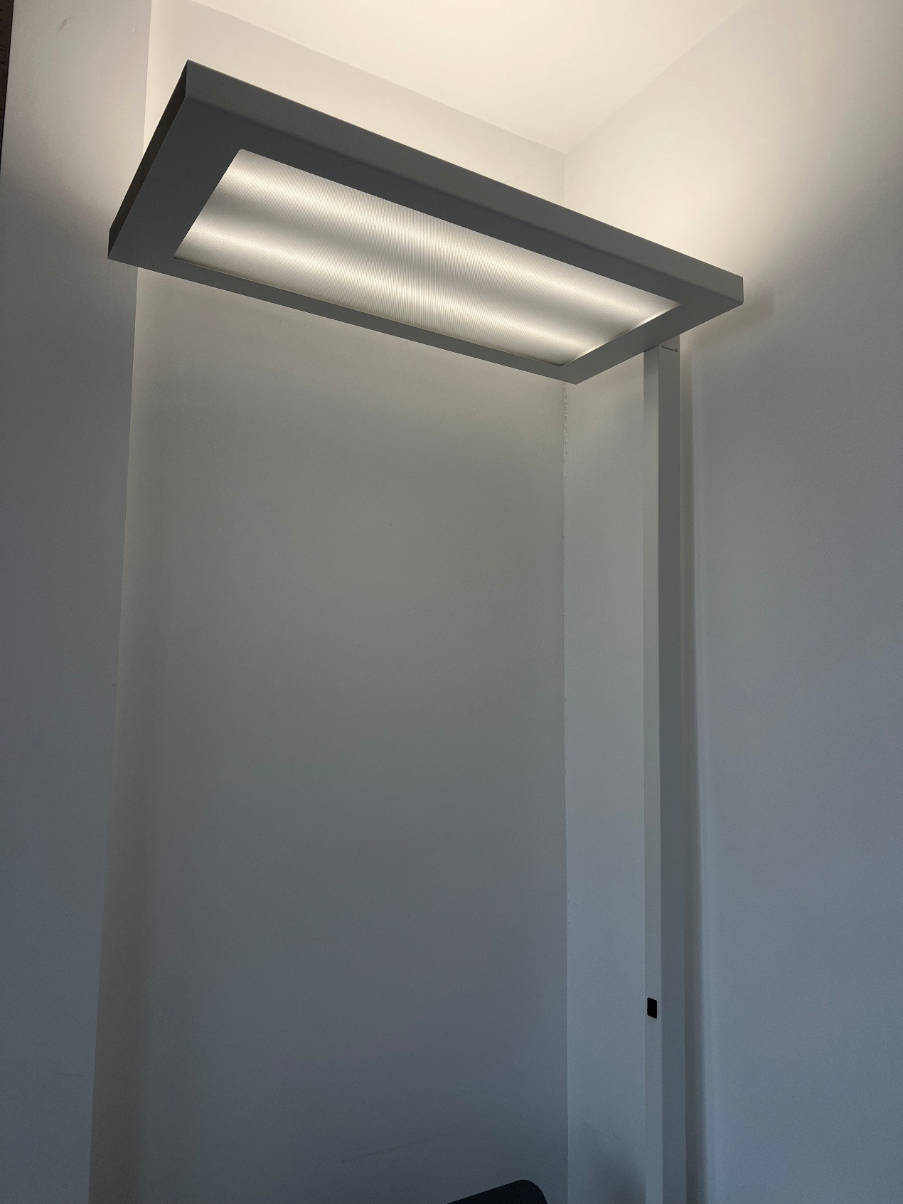 落地护眼灯该如何选择?飞稳冰川光Max采用的是全光谱太阳光技术,光谱曲线与太阳光拟合度高,在防蓝光方面起到降低有害蓝光的效果,此外在显色指数方面达到了Ra98,还原度物体真实色彩,飞稳冰川光Max在光学结构上,通过三层漫反射设计将光线均匀扩散,使得光线均匀舒适,此外飞稳冰川光Max在通光量达到了11000lm,光线亮度得到提高,覆盖照明面积变广,另外该灯在防眩光方面指数UGR<13,有效避免光线直射对视网膜的刺激。不过要注意的是该台灯在光线方面缺少红光养护眼技术,在这光线方面还有待提升。