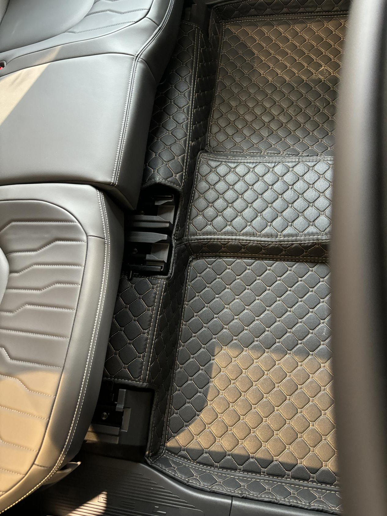 销售很热情,直接拉开车门让看里面。我最关心的当然是座位。锐界L的七座有两种布局可以选,2+2+3或者2+3+2。像我家这种情况,父母加俩孩子,2+2+3的模式感觉更实用。中间两个独立座椅,老人坐着舒服,进出第三排也特别方便,直接从中间过道就过去了,不用再翻折第二排座椅,这个设计对于经常用第三排的家庭来说是个福音。我特意去第三排试了试,以我的身高坐进去,膝部和头顶都还有点余量,不是那种只能应急的“小板凳”,短途出行完全能接受。