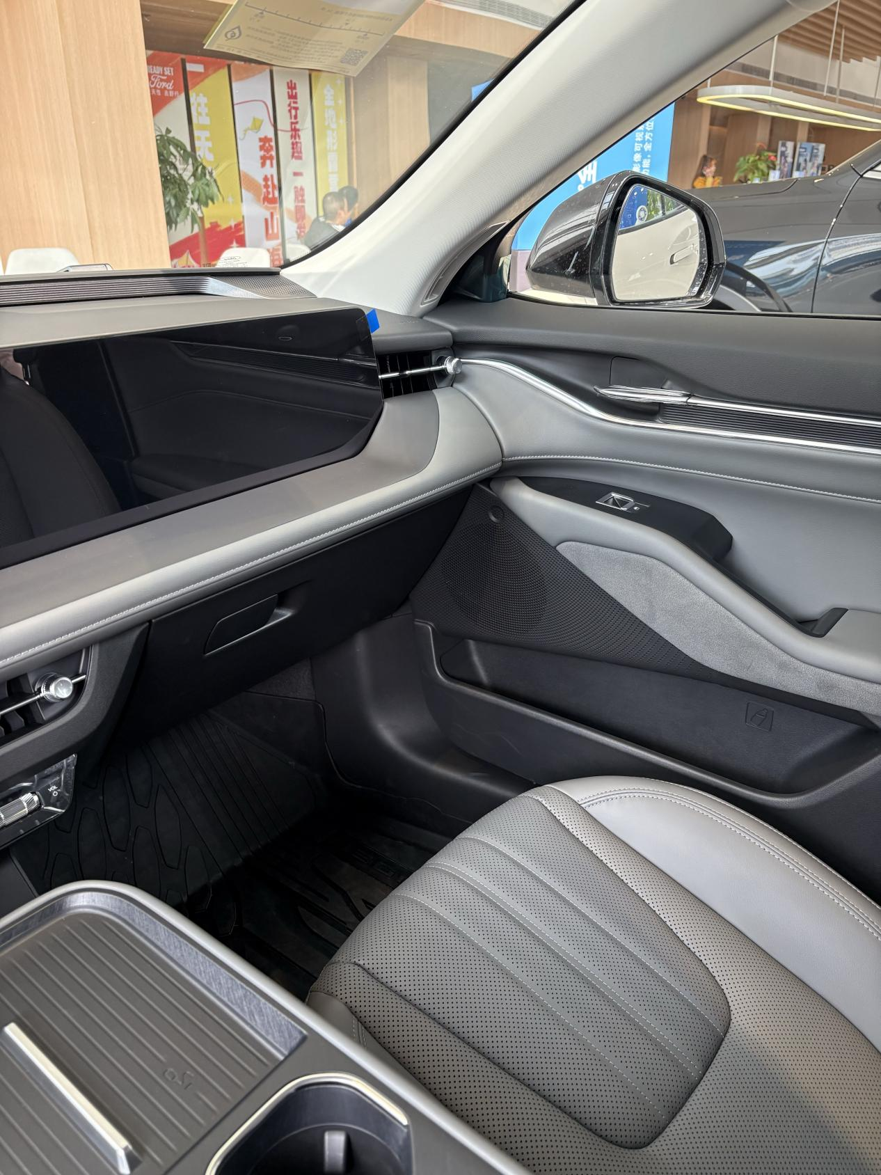 看人先看脸,看车先看颜。刚进店就被实车颜值拿捏了,大尺寸格栅比图片顺眼太多,溜背造型家用不浮夸,商务也不违和,融入了野马元素的尾灯亮起来超有辨识度。