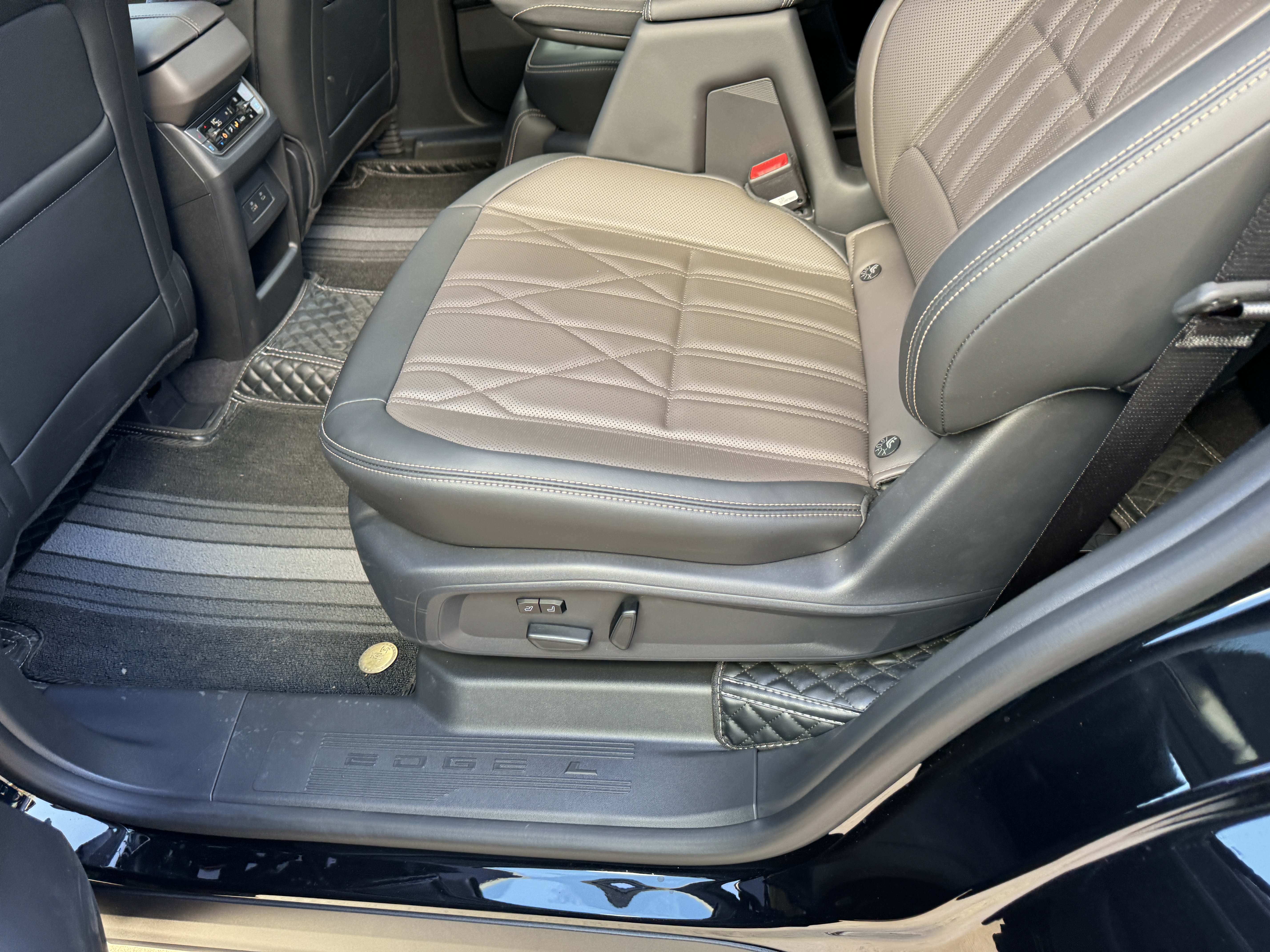 真正打动我们一家的,还是它的空间和座椅。展厅里那台展车是223布局的,我第一次体验这种。第二排两个独立座椅,带扶手,就跟坐MPV似的,老人试坐了一下就说舒服,不用跟别人挤着。进出第三排特别方便,直接从中间过道走过去就行。上周末我们全家出门,都穿着厚厚的羽绒服,我妈第三排进出,一点没费劲,这点她特别满意。