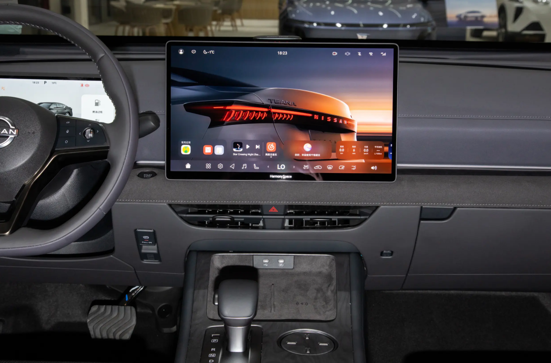 看完外观再说内饰,坐进车内的第一感受,两款车的侧重点截然不同,天籁是偏家用的舒适和简约,而蒙迪欧则主打实用至上,贴合日常用车的各种小需求。天籁的中控台上是软乎乎的材质,搭配的木纹饰条一点都不老气,门板和无线充电版都有翻毛皮,整个内饰是偏新能源车的那种素感,连这中控屏都像新能源车的屏幕,整个内饰就是鸿蒙的那些新能源车的同款