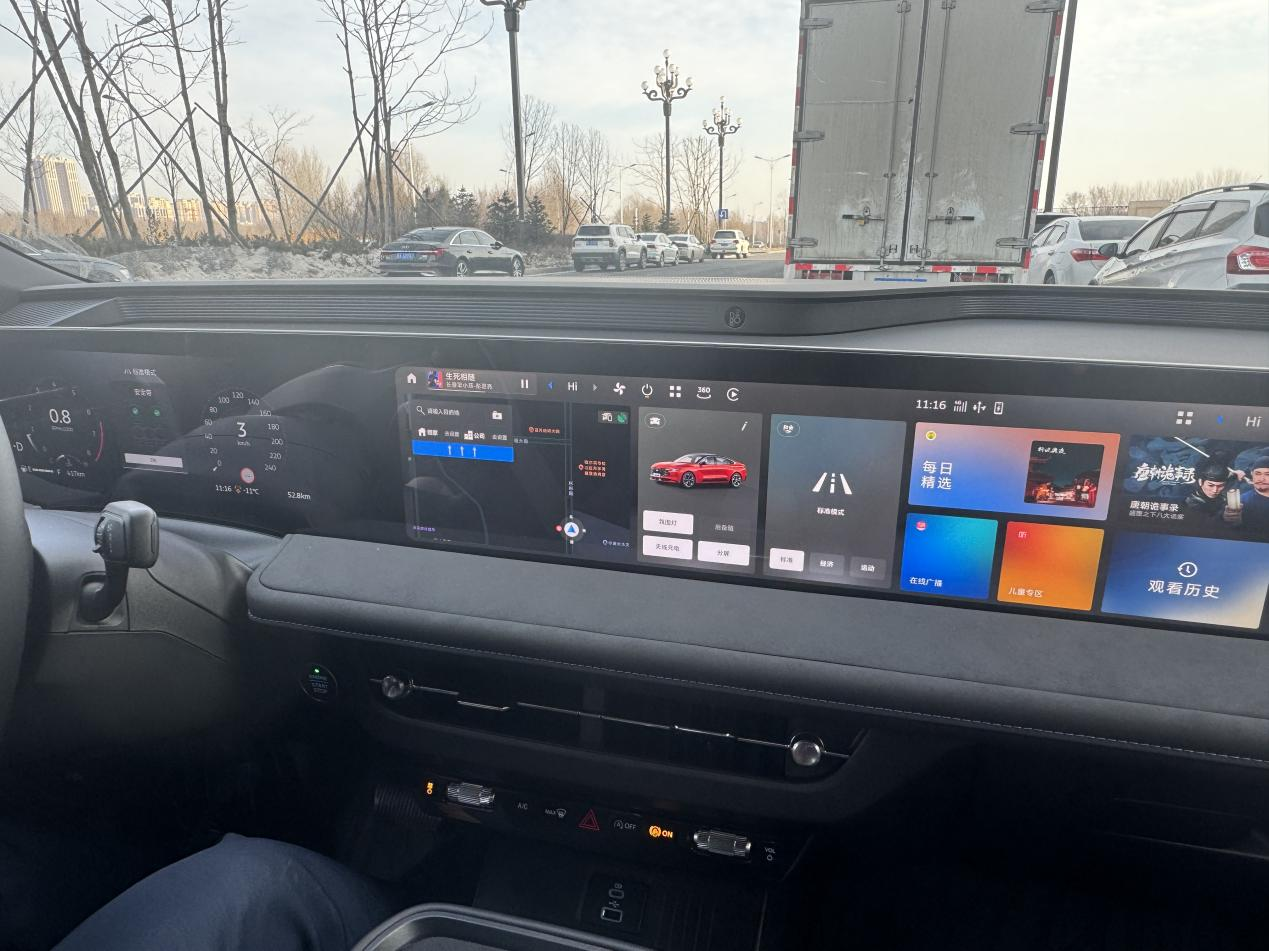 还有几个细节让我特别满意:一是旋钮式换挡,阻尼感恰到好处,自带高级感,前排悬浮岛台下方还有镂空储物空间,放包、纸巾很方便,上方无线充电板还带风冷功能,充电不发烫;二是动力强还不挑食,2.0T的排量加92号油就行,比同级别不少要加95号油的车型省了不少用车成本;三是辅助驾驶配置够全,带全速域ACC、车道保持,还有540°全景影像+透明底盘,即使像我老婆那样的新手,停车、过窄路也能轻松应付。
