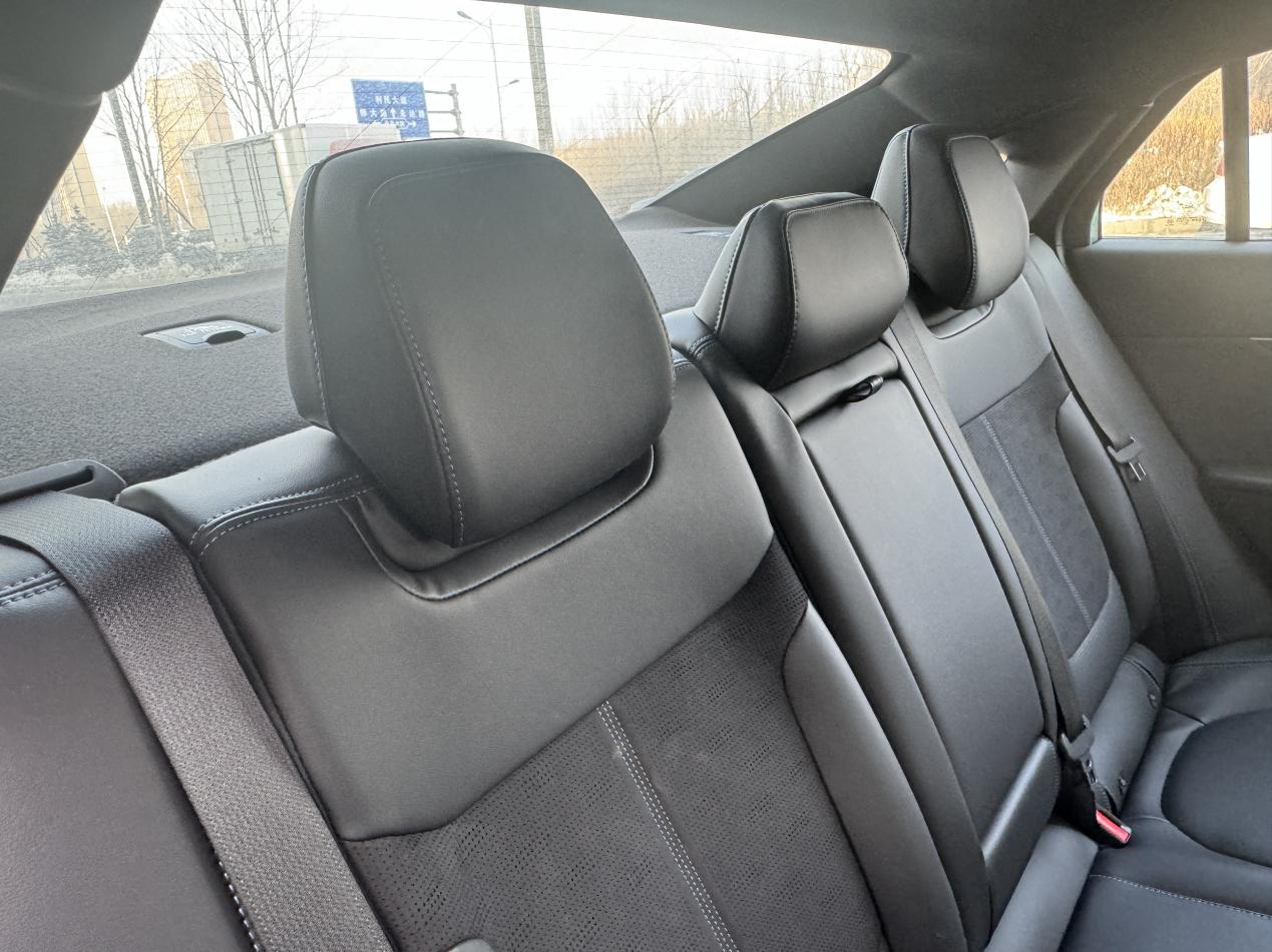 坐进车内,至尊版专属的皮与麂皮混搭座椅,中间翻毛皮还带打孔设计,座椅舒适性拉满,坐垫和靠背弹性适中,两侧包裹性很好,而且主副驾都带电动调节、加热和通风,还有方向盘加热。