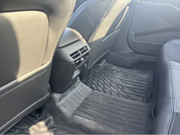 车内空间比较宽敞,我身高180cm,坐在前排头部还有一拳左右的余量,后排腿部空间也很充裕。周末带一家五口出行,爸妈和孩子坐在后排,不会觉得拥挤,后排地台几乎是平的,中间坐人也不会太局促。
