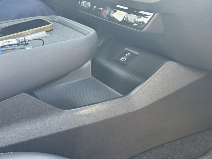 车内的灰色内饰质感还可以,门板和中控台经常碰到的地方都是软包,摸着手感细腻。B&O音响的音质值得一提,平时开车喜欢放首歌,重低音比较沉稳,人声也清晰,关上车窗后音效更纯粹。