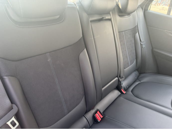 这车的座椅舒适性很不错,至尊型是皮和翻毛皮混搭的材质,触感高级,支撑性和包裹性都很好,主副驾还带加热和通风功能,灰色的座椅也耐脏,日常使用很省心。车里的空间表现也是对比后很满意的一点,这也是比过帕萨特后最直观的感受。我和老婆同时坐到新蒙迪欧后排,腿部空间很宽敞,膝盖离前排座椅还有不少距离,头部也不会觉得压抑,而且后排地台近乎全平,中间坐人也不会觉得局促,后排的乘坐体验很舒服。