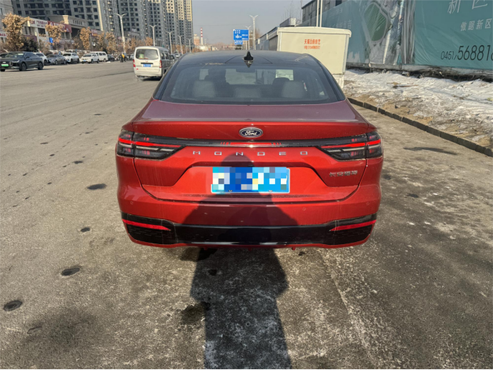 看过这么多车,颜值上还是新款蒙迪欧合心意,运动感更足,细节也打磨得更精致,还是那种越看越耐看的类型。选色时纠结过经典的白色和黑色,直到看到赤霞红的实车就定了 —— 红得沉稳不艳俗,还透着细腻的光泽,高级感很足,搭配新款的外观设计,气场刚好。一体式贯穿 LED 大灯比老款更犀利,三段式日行灯和格栅融在一起辨识度很高,溜背车顶搭配隐藏式门把手的设计,依旧是同级里的颜值标杆。