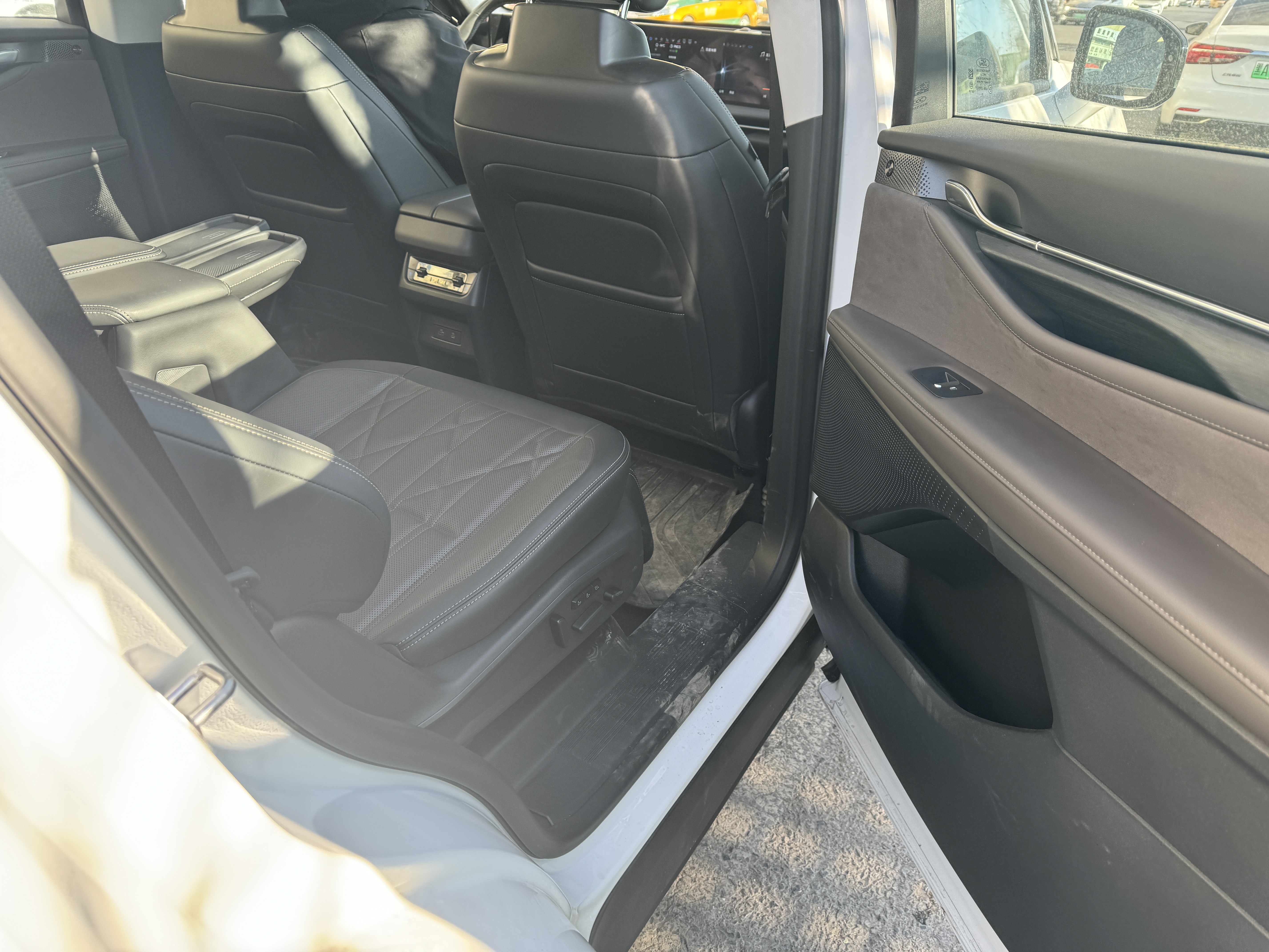 再一个就是空间和舒适性,这真是锐界L的强项,尤其对我们这种一大家子出行的。我这是223的座椅布局,二排是两个独立座椅。这次回去,车上坐满了人,还带着不少行李和给长辈的东西。最让我媳妇夸的是进出第三排方便。冬天大家穿得都厚,羽绒服棉裤的,要是像汉兰达那种232的布局,想进第三排就得翻折二排座椅,挺麻烦的,人也得侧着身子挤过去。
