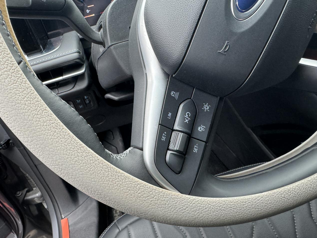 动力上,我这款是2.0T的,252匹马力,数据上看着就不错。实际开起来,动力确实很足,起步、加速都挺轻快的,超车的时候很有信心,完全不像在开一台这么大的车,方向盘转向手感也挺顺手,属于比较好开的那一类。前段时间周末带孩子去郊外的山上玩,有一段非铺装的烂路,坑坑洼洼的。我就用到了那个陡坡缓降功能,还有自动开启的540度透明底盘,中控屏上能看清楚车底下和周围的情况,心里特别踏实,走那些“炮弹坑”的时候,能精准避开大石头,感觉这个功能对于偶尔走点烂路或者狭窄地方停车还是挺有用的。