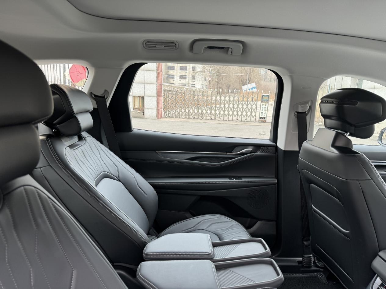 而且中央通道有200mm宽,这点设计真贴心——上周带爸妈出门,他们穿着厚羽绒服,侧身一下就走到第三排了,一点不费劲。平时周末带儿子去郊外玩,玩累了他就嚷嚷要上车躺着,一键舒躺,他能在后座眯一觉,我和媳妇在前头开车也不担心他累着。