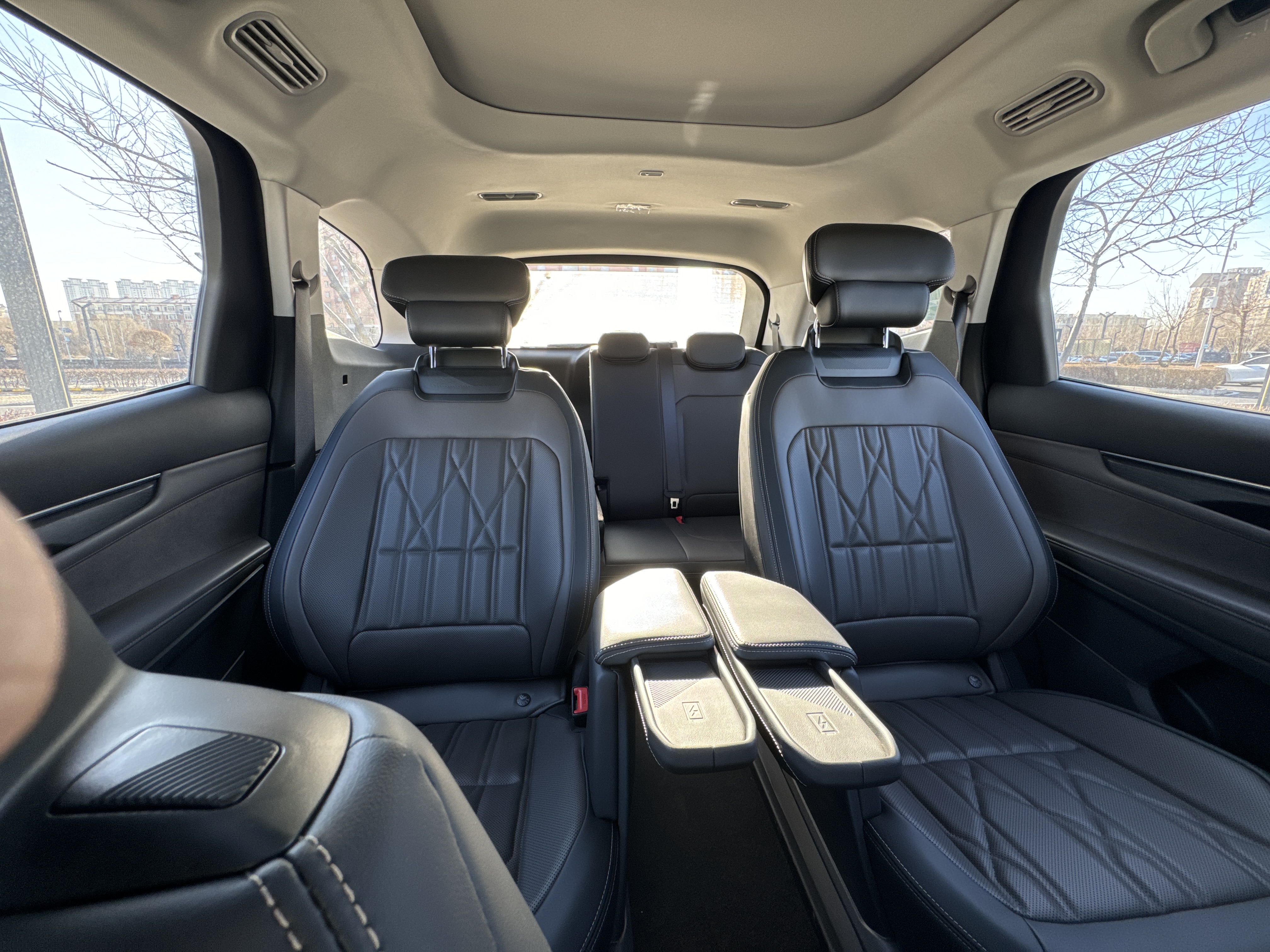 最让我满意的是进出第三排,直接从第二排中间过道就走过去了,特别方便,不用再吭哧吭哧地翻座椅。第三排我试过,坐两个成年人中短途完全没问题,不是那种憋屈的摆设。后备箱在七座全开的情况下,也能放下几个行李箱,对我们家来说足够用了。