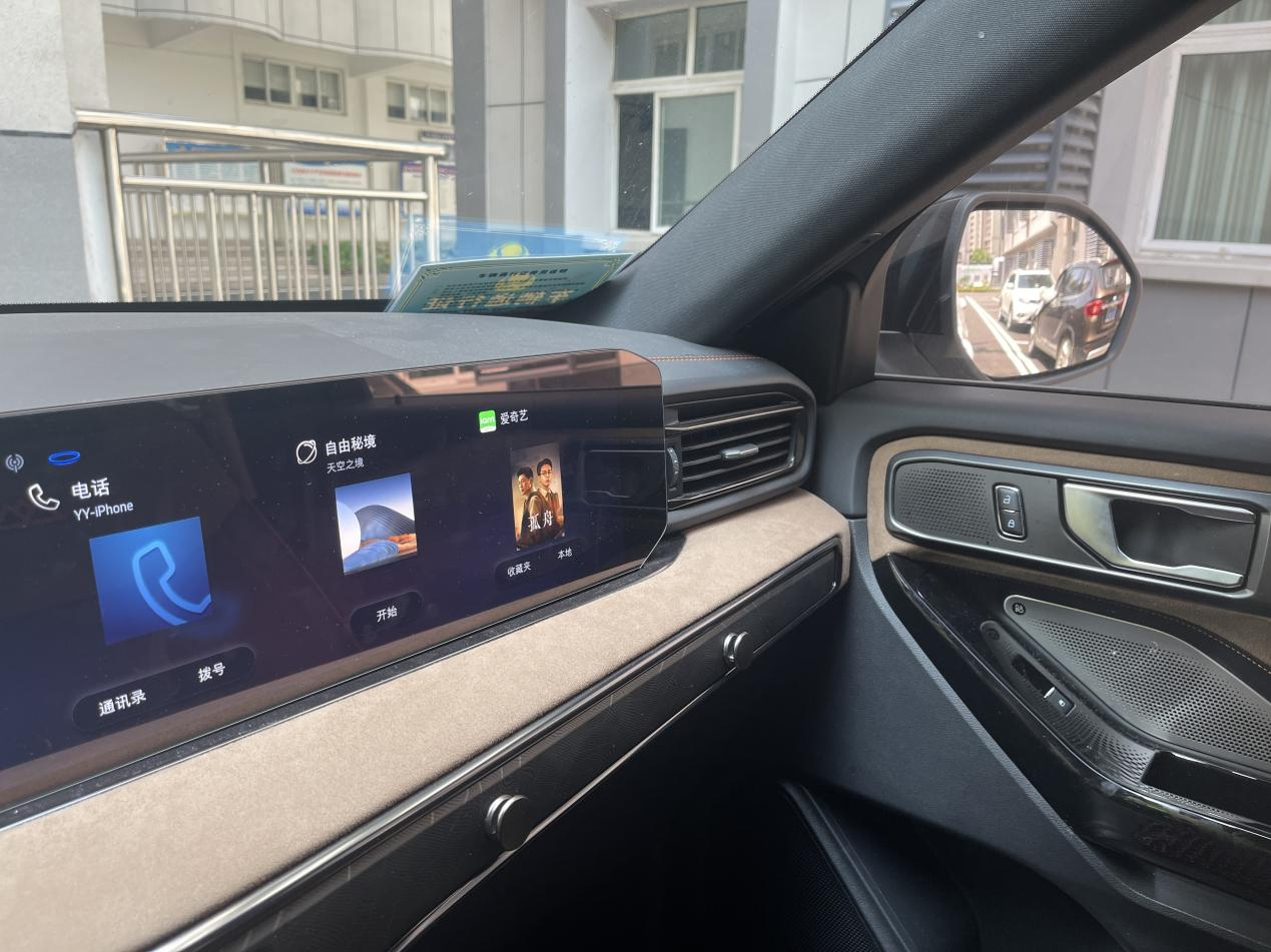 外观咱前面聊过了,先说说内饰。探险者的内饰我是真挑不出毛病,尤其是我这昆仑巅峰版,坐进车里,但凡手能摸到的地方,全都是软乎乎的皮质,点缀的棕色麂皮,摸上去手感一绝。