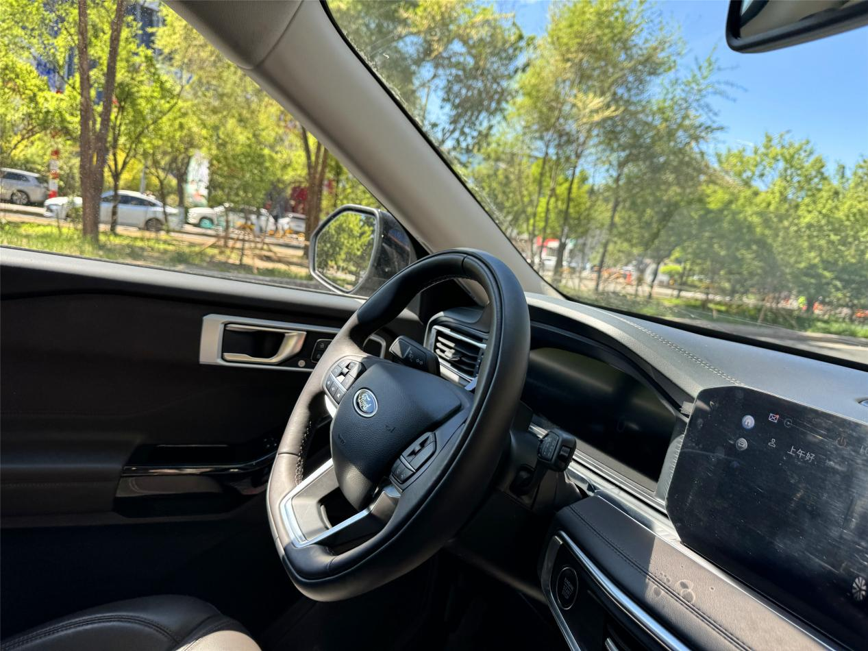 很多人说操控是个虚无缥缈的东西,但开了探险者之后,我却有了最直观的感受。它的转向非常精准,手感细腻又不失沉稳,握在手里很有安全感。纵置后驱的布局,也让这款五米多长的大车,在调头、转弯时丝毫不会觉得费劲,5.9米的转弯半径,甚至比一些紧凑型SUV还要灵活。