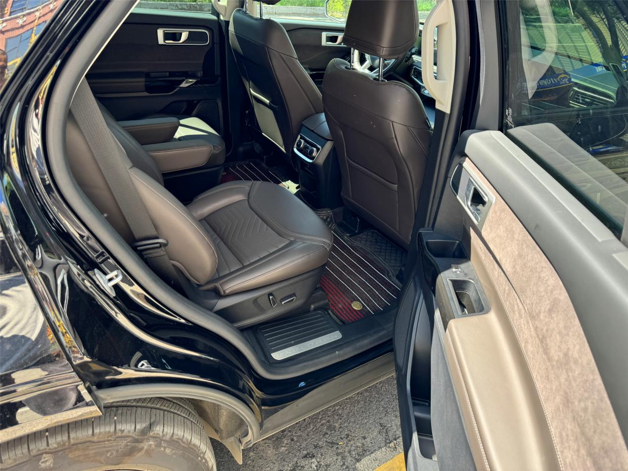 而探险者呢,这款车的外观同样很有冲击力,肌肉感十足,车身线条硬朗流畅,比普拉多多了几分家用豪华气息。空间方面更是给足了,作为六座SUV,它比普拉实用性更强,尤其是第三排,我身高175cm、体重75KG,坐进去之后腿部还有一拳左右的距离,这样的空间表现,哪怕是长途出行,也能保证家里人的乘坐舒适性。