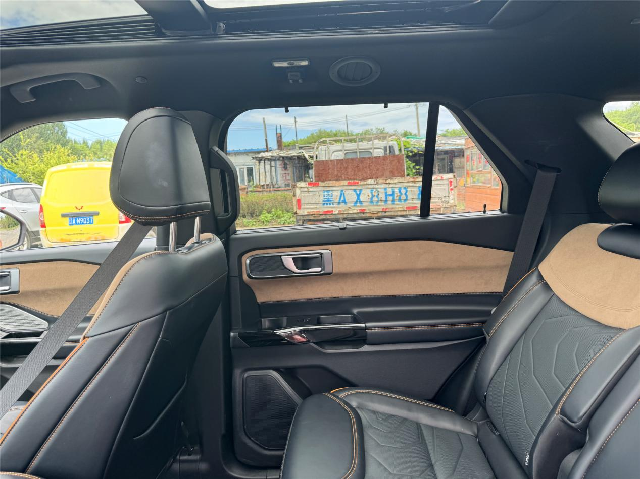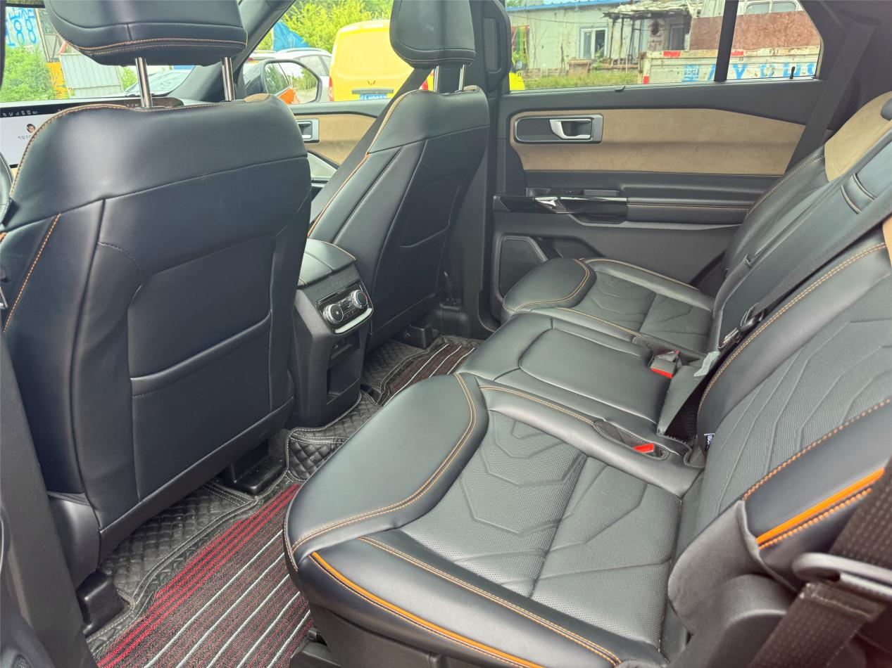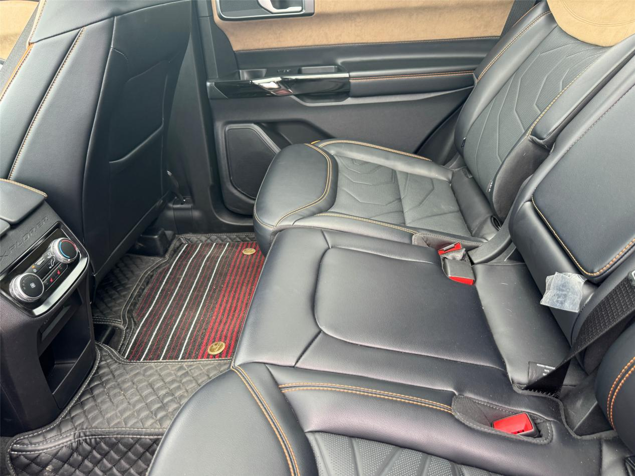 先说为啥选这车吧,其实最先看过普拉多,四驱+托森确实硬核,但那时低配就接近50万的落地价让我打了退堂鼓,而且第三排空间比想象中局促,第三排根本坐不了人。试驾时感觉车身有点笨重,市区掉头得揉两把方向,油耗虽然比老款改善但加95号油成本不低。后面又在福特4S店看到昆仑巅峰版的实车,纠结了一周配置:比普通版多了托森后差速器、全地形AT轮胎、金属底盘装甲,还有专属的橙色拖车钩和"昆仑巅峰"金属贴标。想着平时周末喜欢带家人去周边爬山露营,这些配置确实实用,一咬牙就订了。落地41万,比普拉多便宜很多,但越野配置一点没含糊,提车那天看到实车,觉得值了。