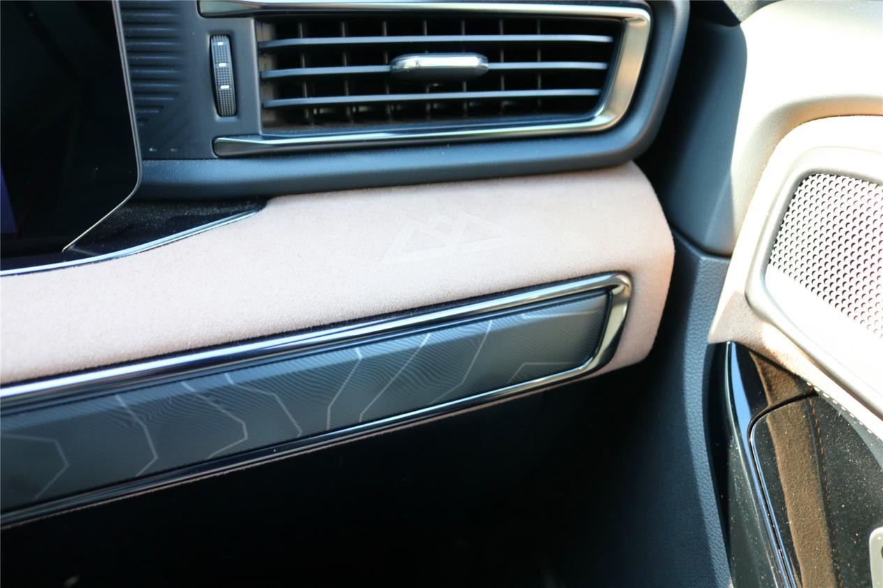 内饰走的实用路线,没有花里胡哨的设计,大面积都是真皮和翻毛皮,摸起来手感不错,不像有些车全是硬塑料,看着廉价。座椅上的等高线纹理,搭配橙色缝线,坐进去有专属感。平时开1个多小时高速,座椅支撑性还可以,不会觉得腰酸背痛。隔音效果也还行,关上车门,外面的车流声基本能挡住,听歌、跟家人聊天不费劲,小缺点就是储物空间有点少。
