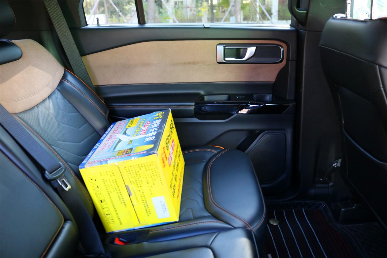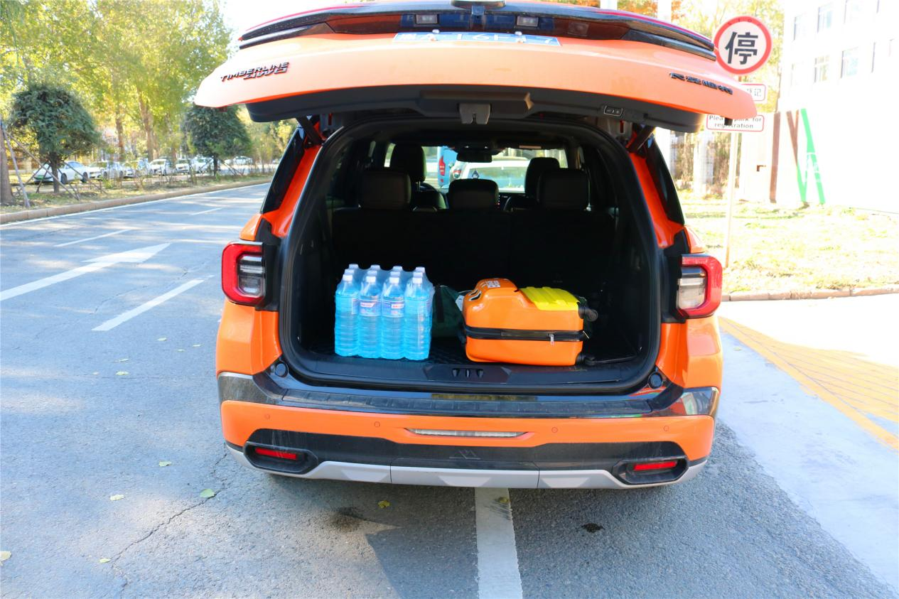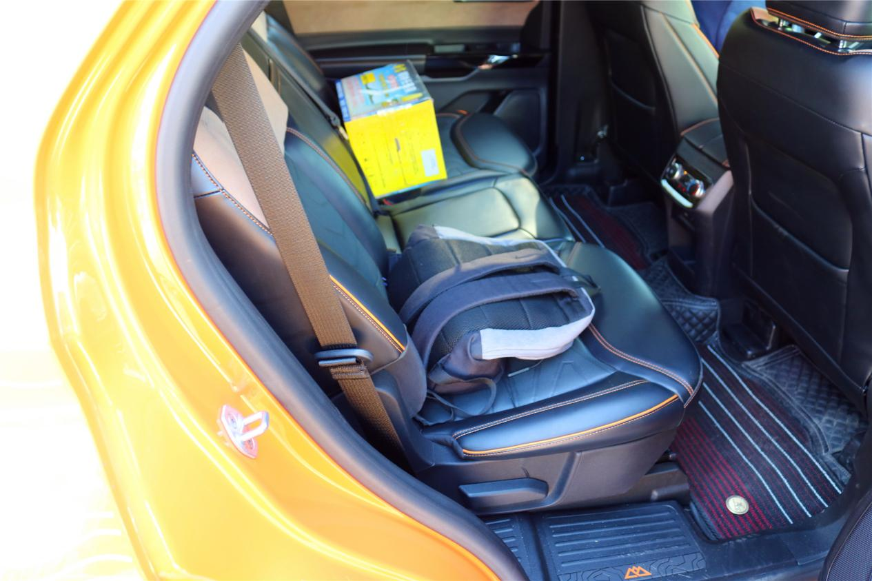 后备箱平时放露营装备、钓鱼竿,完全够用,第三排放倒后,还能铺个气垫床,孩子在上面玩也有地方。