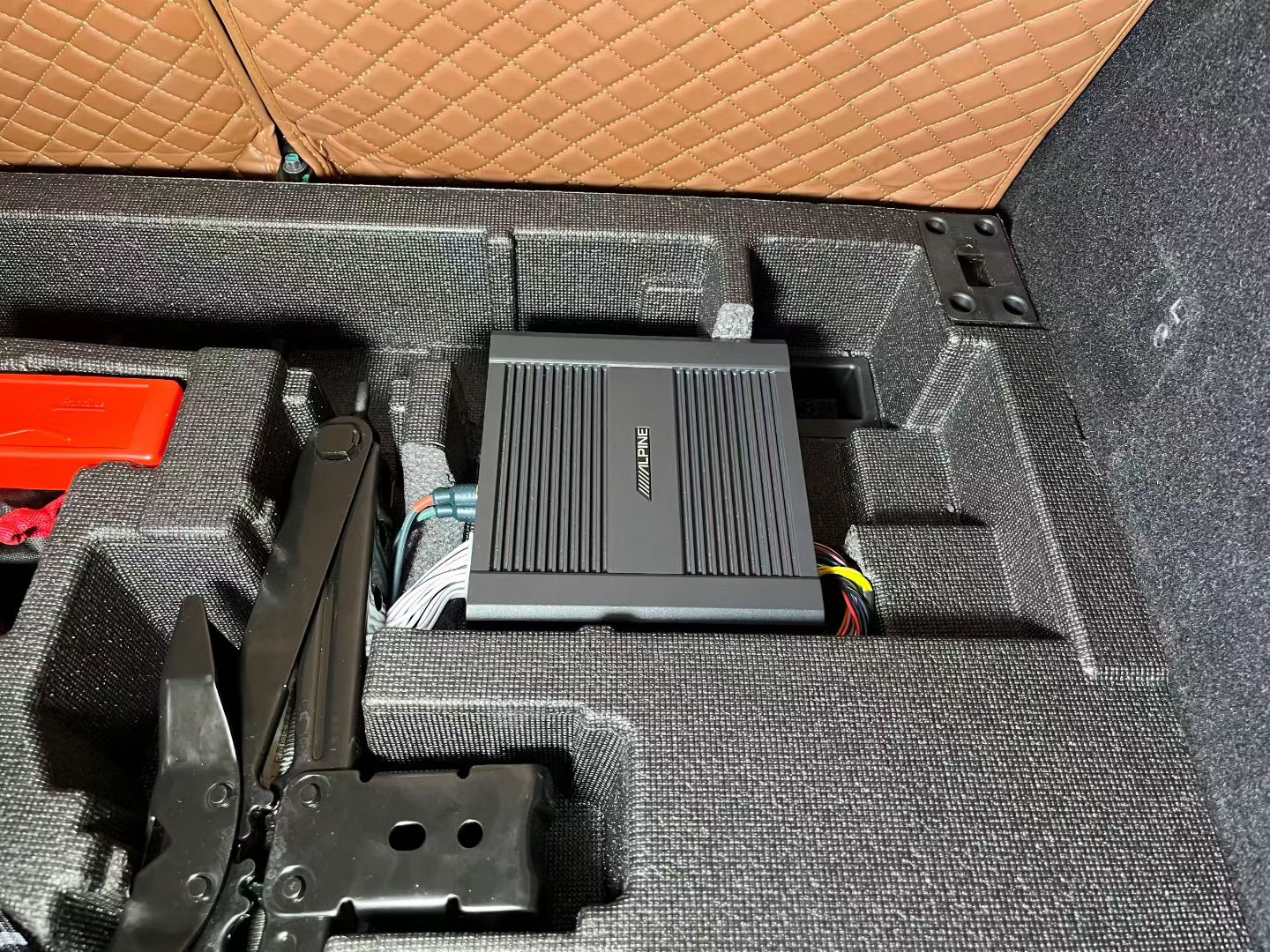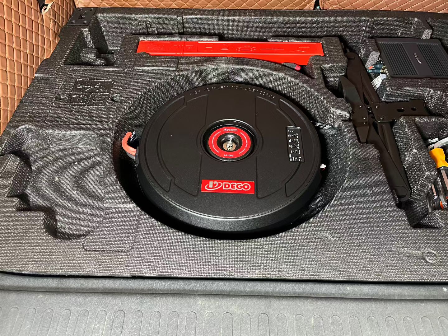 原车这个位置也有低音炮的,但是仅仅只有6寸这怎能有效果,我还把心一划,咬咬牙加点费用上个德高比较好的备胎低音炮,位置刚好,澎湃有力的效果马上显现。