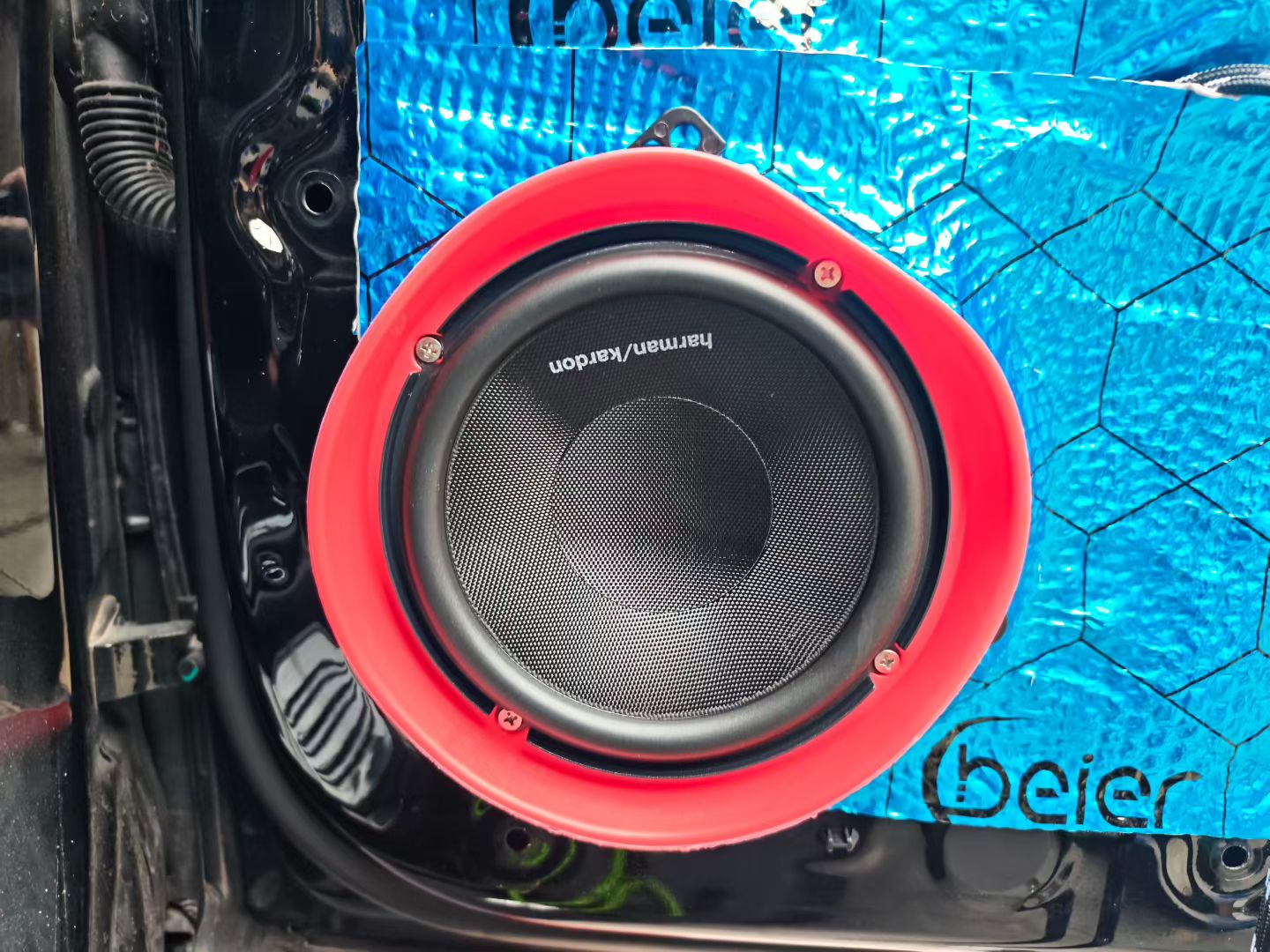原车就是燕飞利仕的音响我还是觉得不如我之前的哈曼卡顿效果,所以今天特意跑到广州找到哈曼旗舰店德乐音响店升级一下,原车就是前后两分频8喇叭加一小低音炮(只有5寸),唉,今天忍痛一下花了9000块升级全套哈曼加上一个德高11寸备胎低音炮,下面就是局部图片