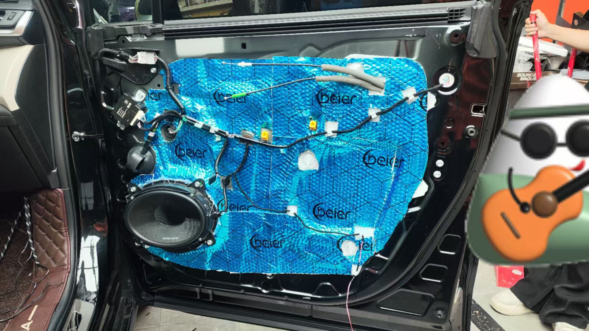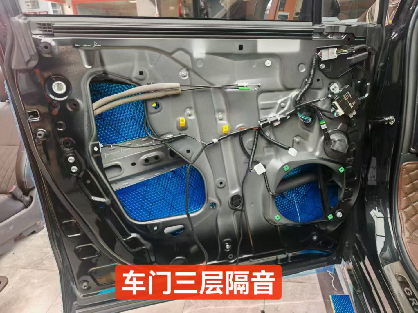 师傅说安装音响首先就是处理隔音,把5门的铁板都升级了隔音,第一层是加厚钣金防止共震,提升音质效果