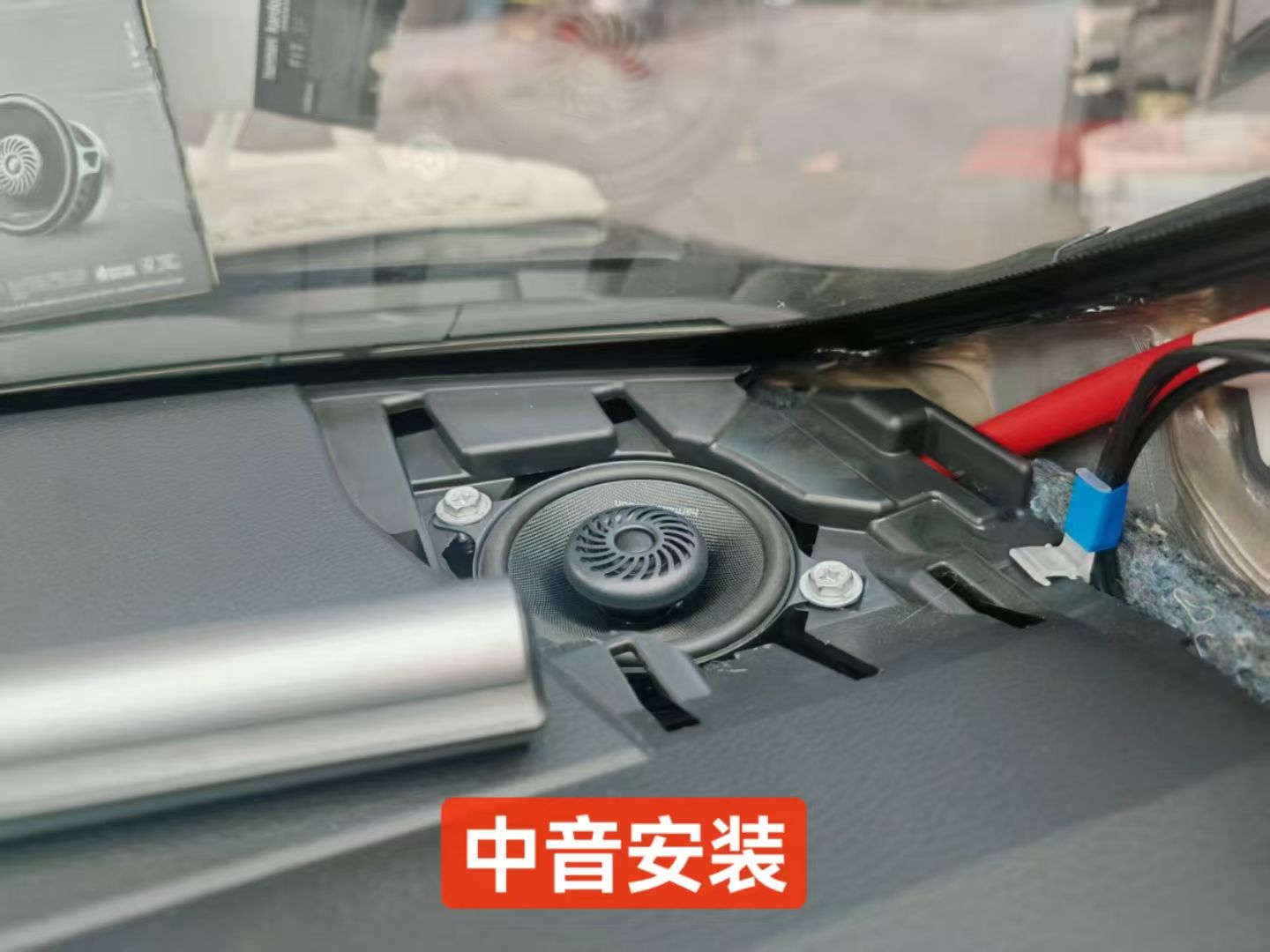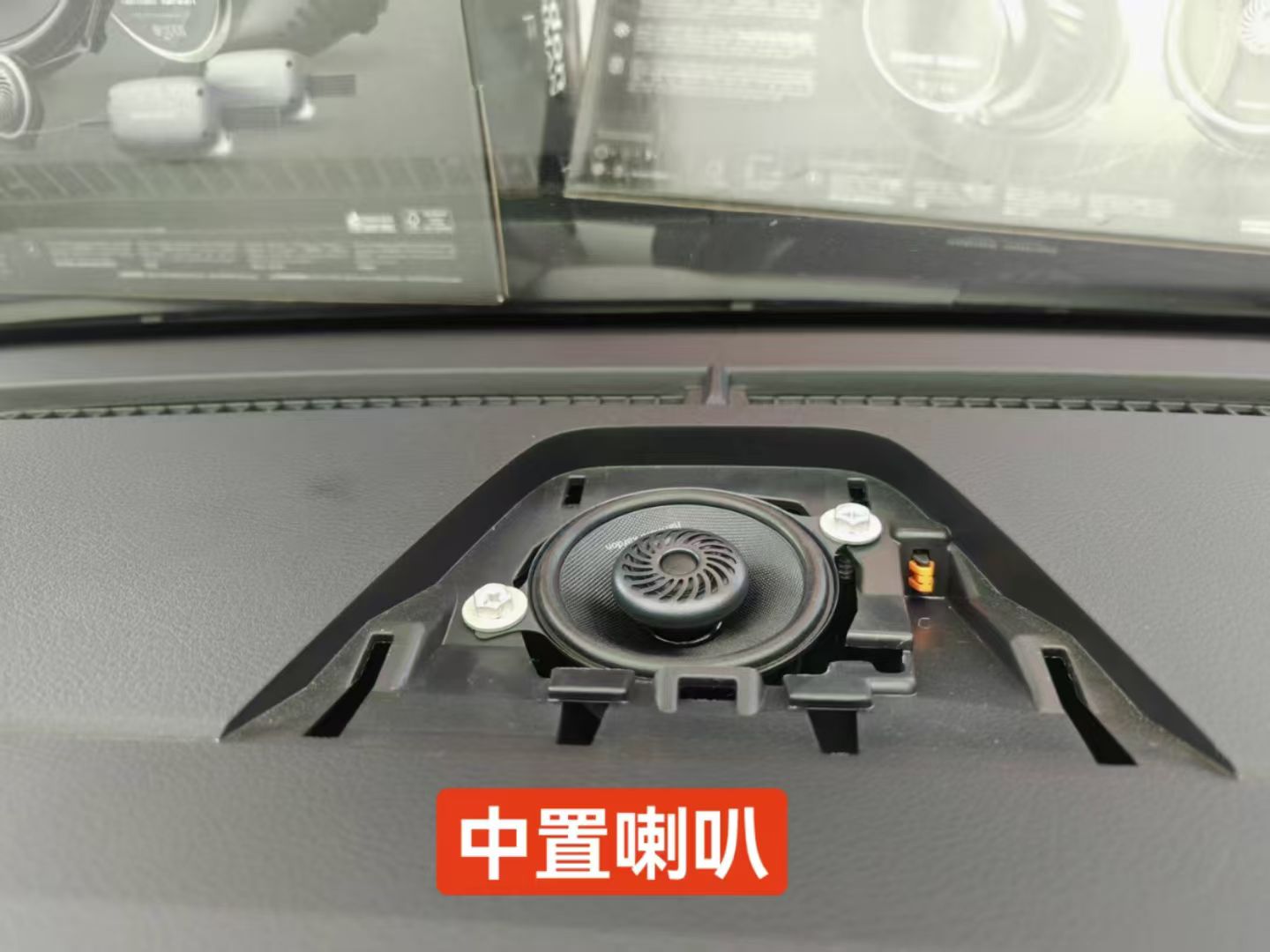 这是中置的喇叭,就在中控中间原车有位置却没有喇叭的,现在补上去了,也声音定位的关键喇叭,大家有没有发现现在很多的高端车型都有中置喇叭