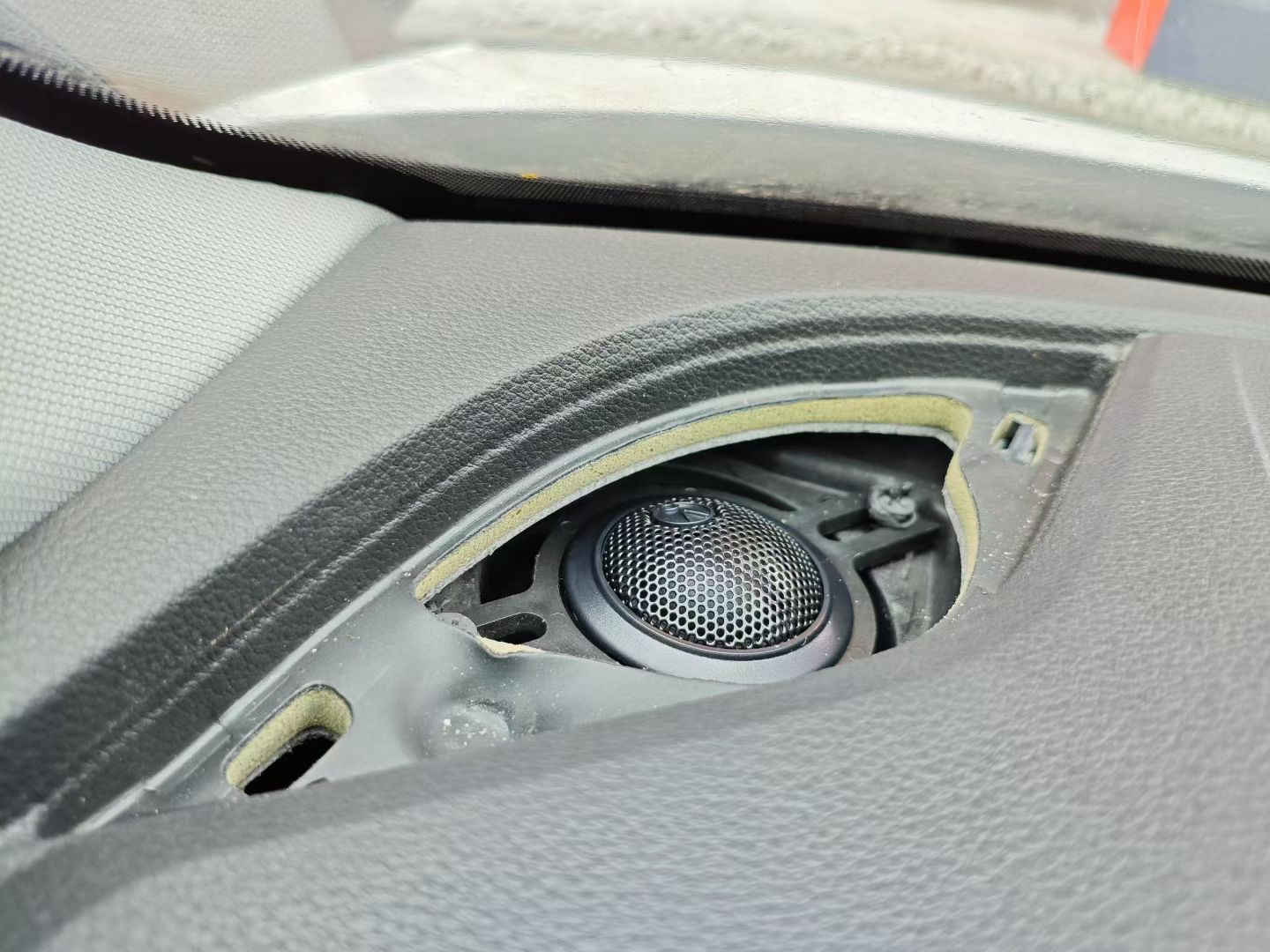 前门的高音位置在仪表台的两侧,原车位置安装就可以了,提升声音的清晰度