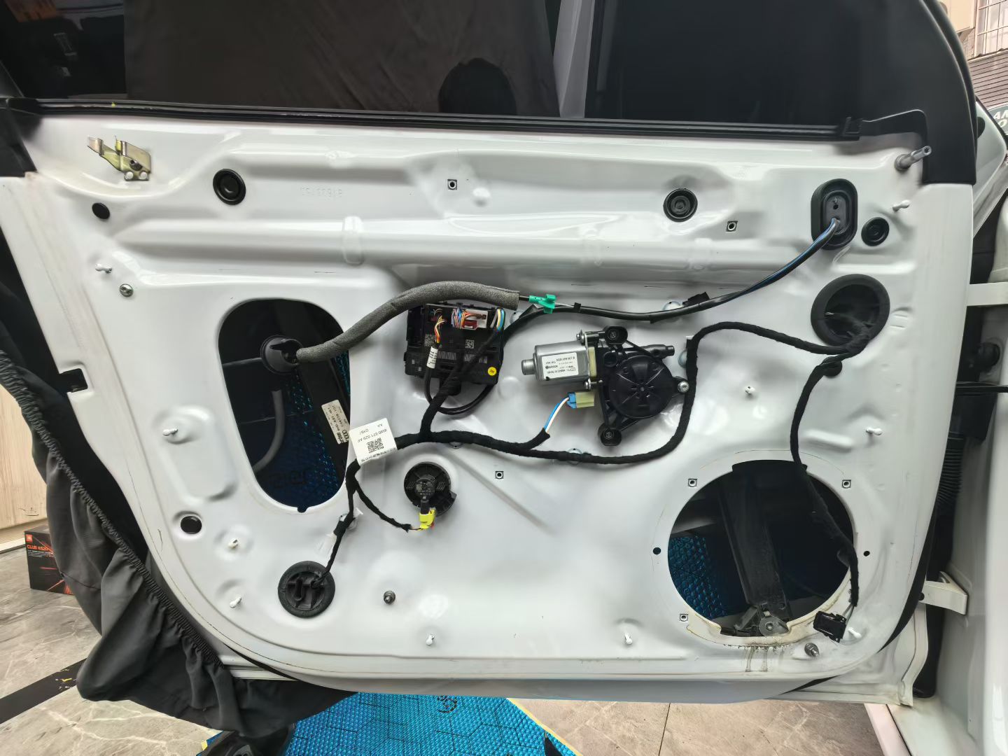 门板中低音原车位置安装,都有专用配件的,无损安装