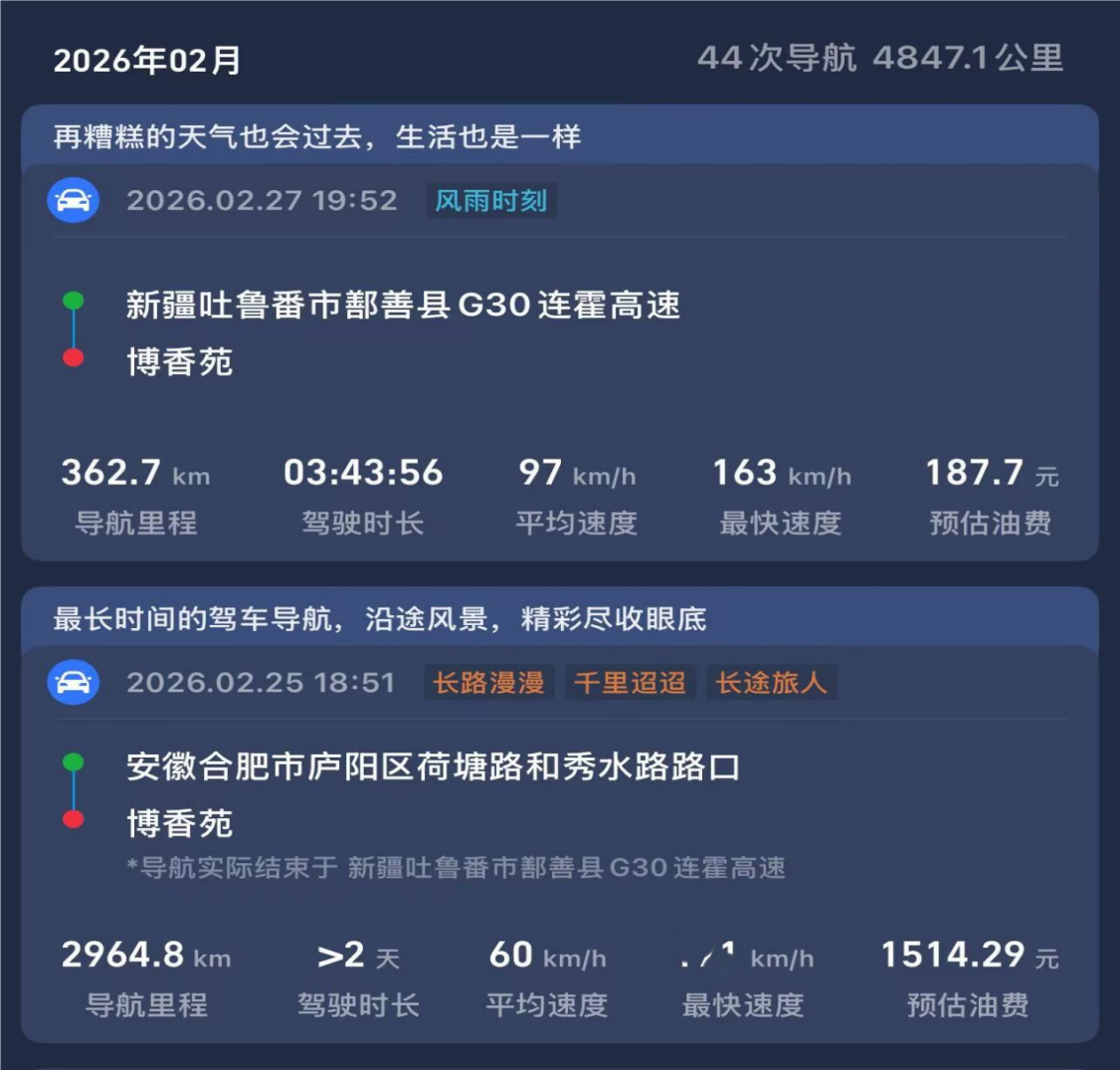 随后,我们再次出发,向着家的方向迈进。这一路上,锐界L的ACC自适应定速巡航功能成了我们的得力助手,它让我们在高速上行驶时更加轻松自如,减少了驾驶的疲劳感。同时,其出色的隔音效果和强劲的空调系统,也为我们营造了一个舒适宜人的驾乘环境。终于,在历经38小时、跨越3400公里的艰苦跋涉后,我们顺利抵达了乌鲁木齐。