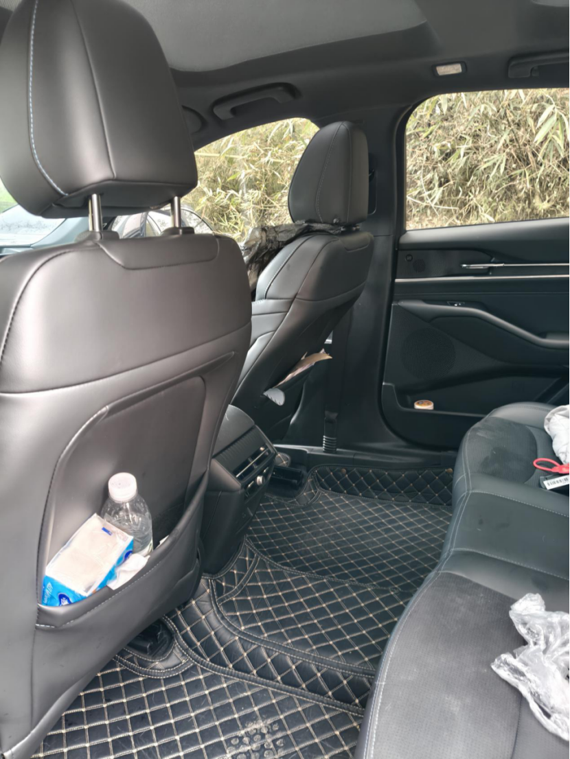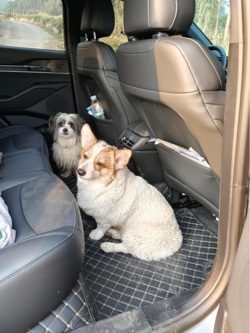 第二个就是空间。 这点是我媳妇最满意的。后排是真宽敞,我闺女坐中间,两条狗在两边趴着,一点都不挤。那个地台也比较平,不像有些车中间凸起老高,狗子来回跑也不绊脚。