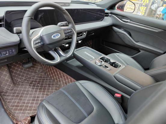 后来路过福特,看到展厅里那台红色的蒙迪欧,我媳妇眼睛都亮了。那个红不是那种俗气的亮红,有点偏暗,光线一照很有质感。整个车线条很凌厉,溜背造型,有点轿跑那个味儿。试驾了一圈,开着顺手,就没再犹豫,直接定了。