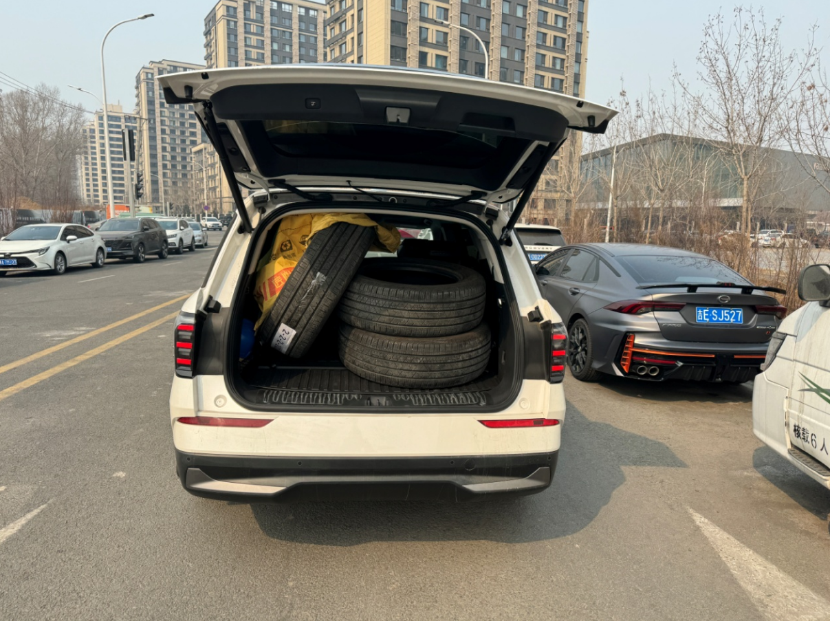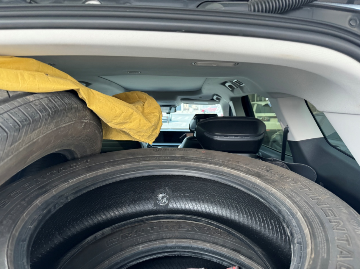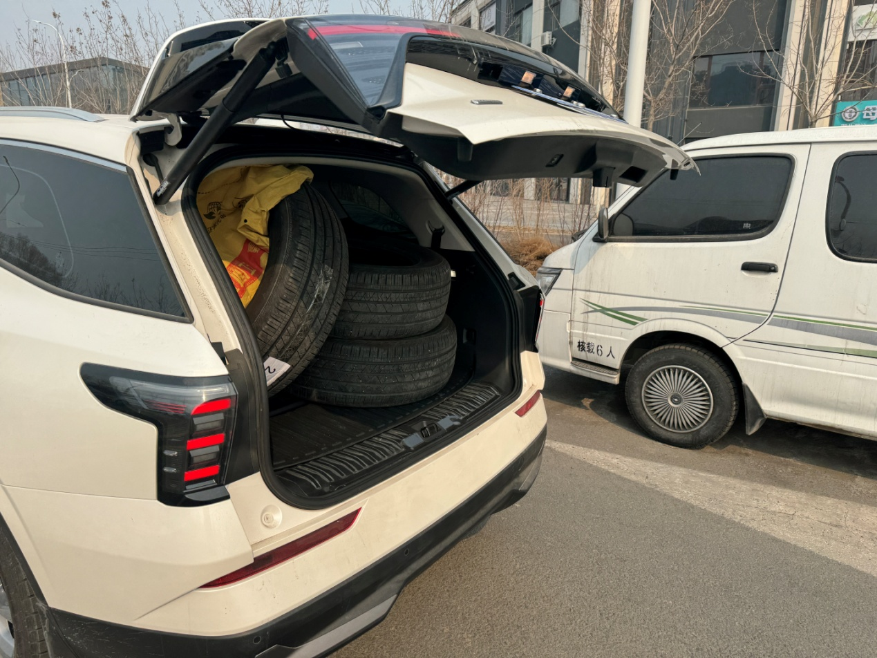 既然是两件大事,咱们就分开说,先说换雪地胎,很多南方小伙伴都没有经历过吧,只有我我北方的车友才知道,一年两次,冬天,换雪地胎,春天换四季胎,多一套胎就多了好几千,每年倒胎两次,存胎两次,又200多,这么一比,我们北方的用车成本确实高,汽油还是乙醇的,真想骂人!但,这里,不是要吐槽,其实我是想表达锐界L的后备箱是真的大,三条R19的轮胎轻松放进去,要不是担心把车顶弄脏了,其实四条也是没问题的