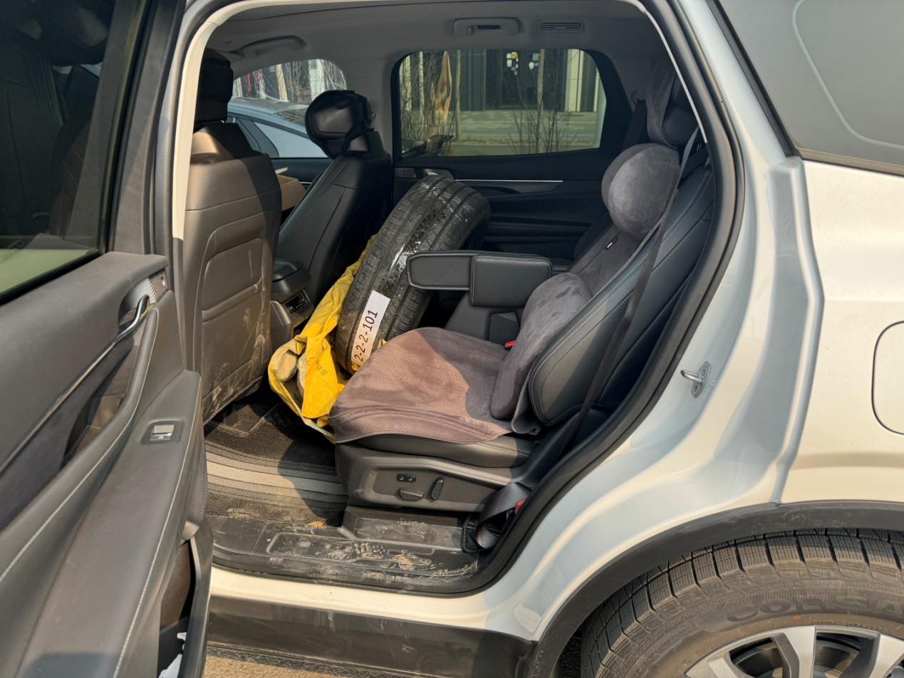 2+2+3的座椅,2排空间也很充足,放一条轮胎,没问题的,这样的空间布局,一直都是我们全家非常满意的
