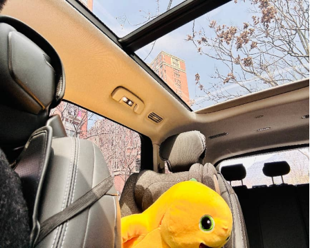 这一路上孩子趴在窗边,看着天上的白云、路边的樱花,兴奋地叽叽喳喳,连旅途的时光都变得格外短暂。而且天窗支持语音开启电动遮阳帘,阳光太强烈时,一句指令就能轻松调节,不用手动操作,驾驶时也能兼顾孩子的需求。