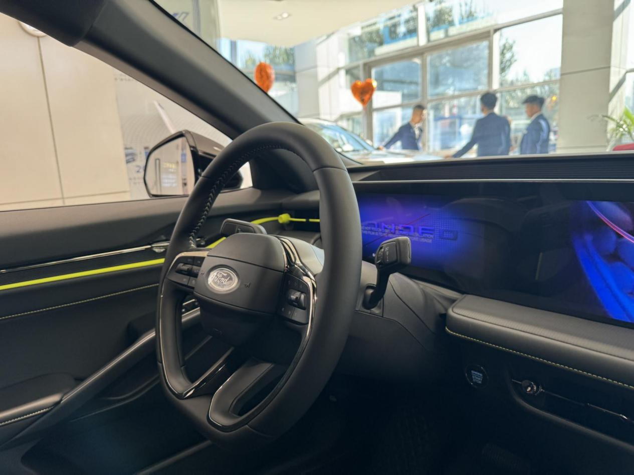 先说说外观,店里展示的是一台灰色的,实车挺有质感的,不是那种特别亮的灰,有点磨砂感,挺低调。前脸是福特家族式的设计,大灯很犀利,车身线条很流畅,溜背造型看着运动感很足。最让我意外的是这车的尺寸,车长快5米了,轴距2945mm,停在那就是个大家伙,气场比雅阁凯美瑞强不少。